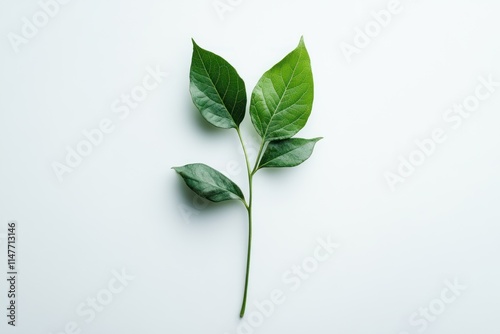 Sprig with four vibrant green leaves on a white background.