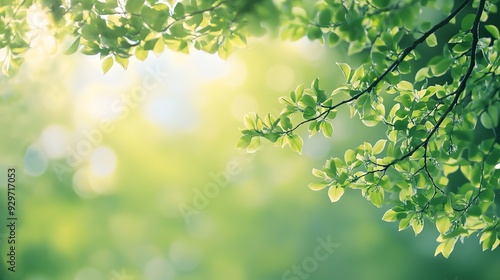 Spring background green tree leaves on blurred background
