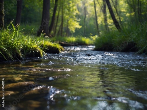 Spring background Stream of water in the forest.