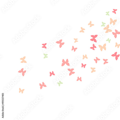 Spring Background with Colorful Butterflies. Simple Feminine Pattern for Card, Invitation, Print. Trendy Decoration with Beautiful Butterfly Silhouettes. Vector Background with Moth