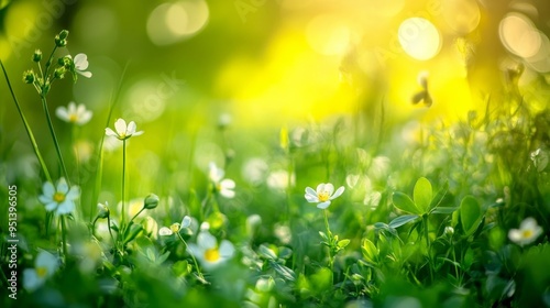 Spring blooms in a field of lush greenery.