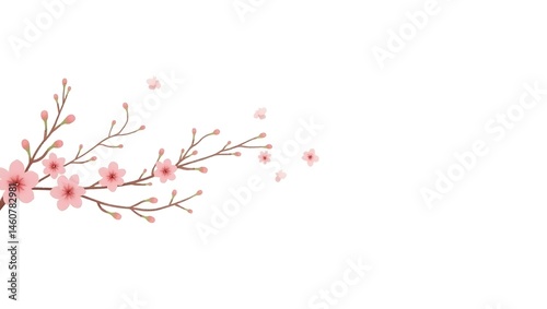 Spring cherry blossom branch with pink floral beauty isolated on white, a Japanese nature illustration