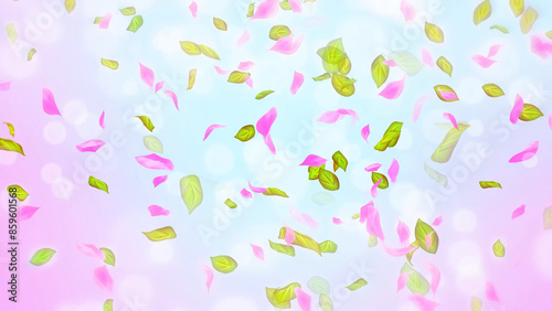 Spring cherry blossom petals and leaves, nature gradient design element