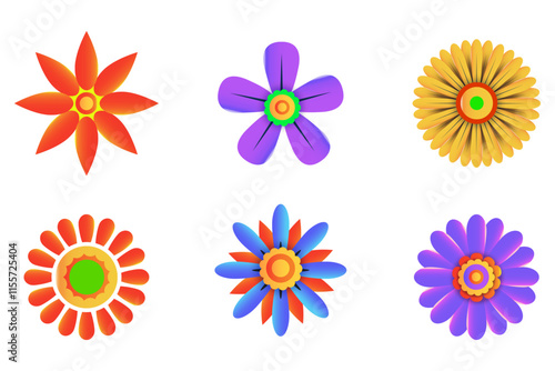 Spring flowers colorful vector set isolated in white background. Collection of daisy and sunflowers with various colors for spring season as graphic elements and decorations.
