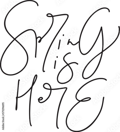 Spring is here lettering lettering vector. Modern style brush calligraphy banner. March decoration sign. Handwritten t shirt insription. Hello to season greeting. decorative fashion print element