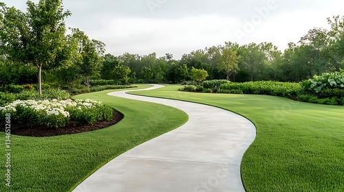 Spring nature walkway surrounded by beautiful flowers greenery and vibrant flora