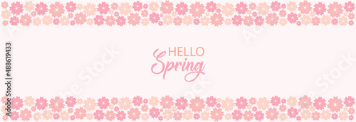 Spring seamless border vector illustration. Holiday pattern with cute flowers on white background. Simple flat style. Vector illustration. Good for banner, greeting card, poster, invitation