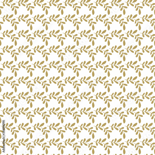Spring seamless pattern with golden sprigs on white background. Vector stock illustration for fabric, textile, wallpaper, posters, paper. Fashion print. Branch with leaves. Doodle style.
