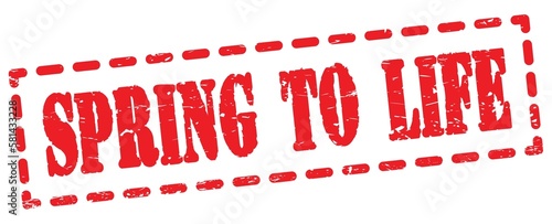 SPRING TO LIFE text written on red stamp sign.