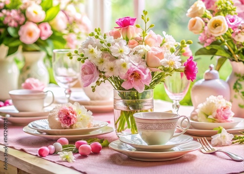 Spring Wedding Table Setting - White Pink Elegance