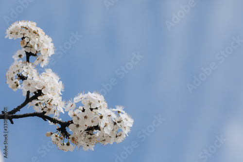 spring white blossom against blue sky