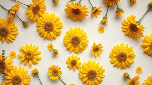 Spring Yellow Flowers Pattern Flat Lay - AI Photo