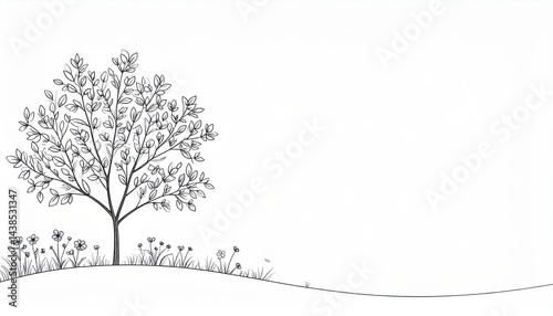 Springtime serenity illustrative tree with blossoms nature scene minimalist design peaceful landscape view