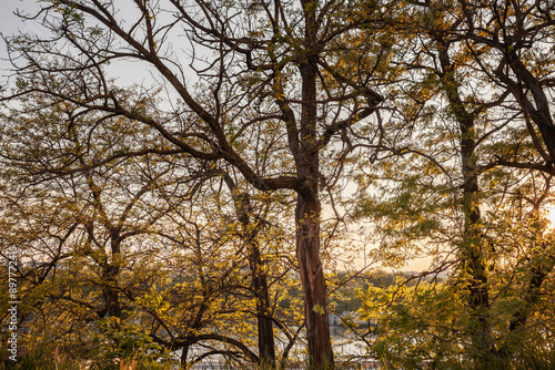 Springtime trees in Belgrade, Serbia. The lush greenery and sunlight filtering through the branches create a serene and picturesque scene, capturing the beauty of nature in the city.