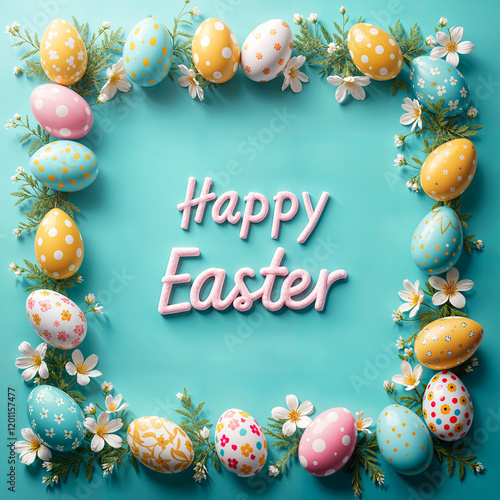 Springtime Whimsy: A Colorful Display of Easter Eggs and Blooming Flowers