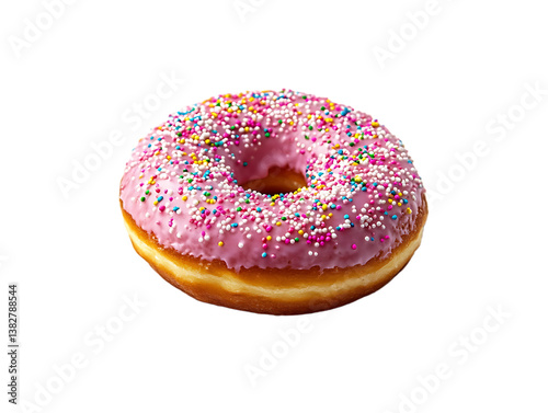 Sprinkled Donut with Pink Icing isolated on transparent background, Sweet Treat