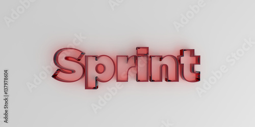 Sprint - Red glass text on white background - 3D rendered royalty free stock image.