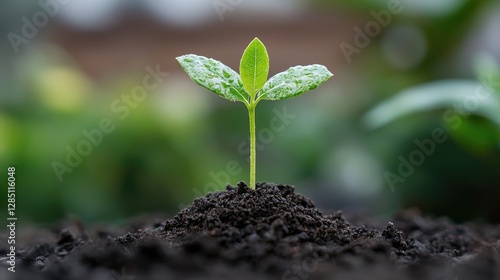 Sprout emerging from soil, garden background, new life, growth concept