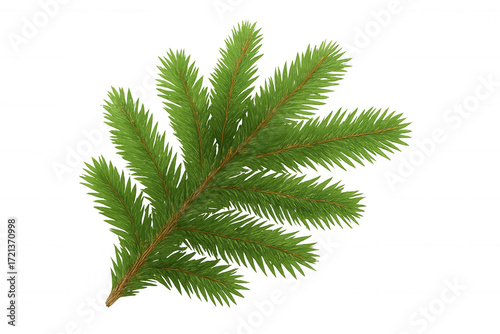 Spruce tree branch with green needles, evergreen conifer symbolizing christmas, winter holidays, and nature, transparent background