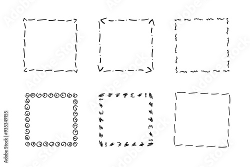Square doodle frames ,hand-drawn monograms.Edgings and cadres with simple sketchy design elements.Isolated. Vector illustration.