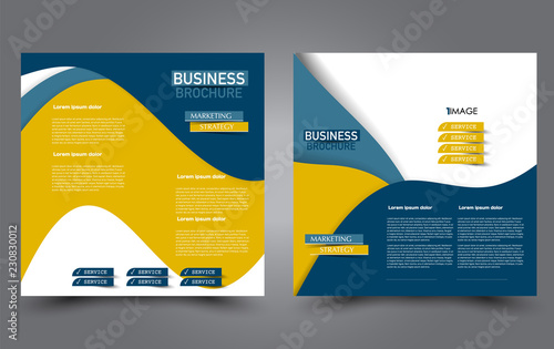 Square flyer template. Simple brochure design. Poster for business, education, advertisement, banner, ad banner. Vector illustration. Blue and yellow color.