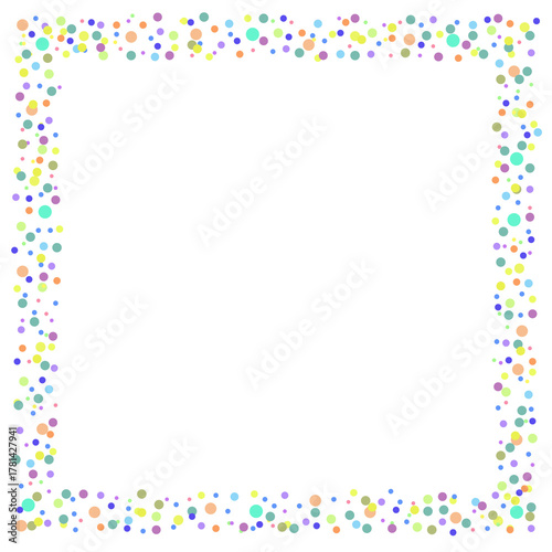 Square Frame of Multicolor Dots in Blue, Green, Yellow, Orange, Pink, and Purple for a Playful, Festive, and Minimalist Decorative Design