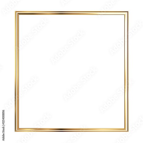Square gold frame with a minimalist design, ideal for modern decor and displaying art or photos. Isolated on transparent background, png.