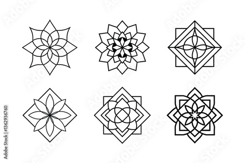 square mandala icon art set vector silhouette