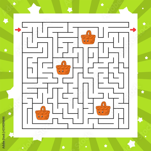 Square maze. Game for kids. Puzzle for children. Labyrinth conundrum. Color vector illustration. Find the right path. Isolated vector illustration. Cartoon character.