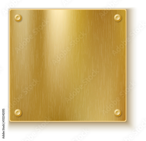 Square metal plate. Blank realistic golden banner