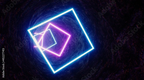 Square Neon Light Cave VJ Tunnel 3D Rendering
