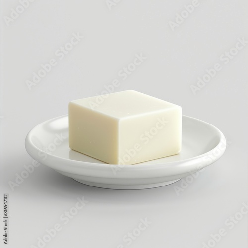 Square of butter on a white plate for mockup or graphic design purposes