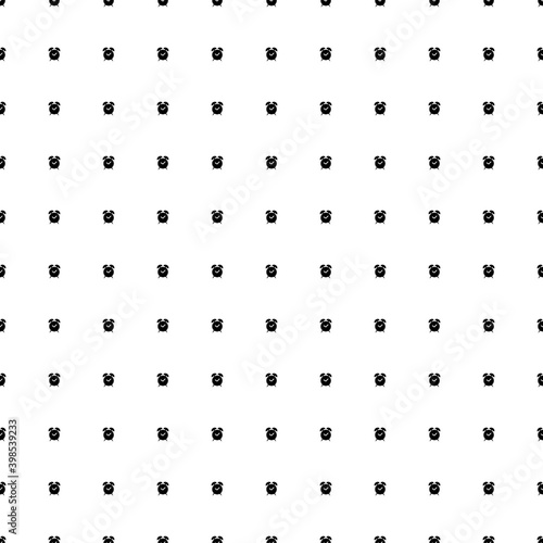 Square seamless background pattern from black alarm clock symbols. The pattern is evenly filled. Vector illustration on white background