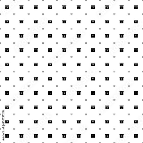 Square seamless background pattern from black gift box with a question symbols are different sizes and opacity. The pattern is evenly filled. Vector illustration on white background