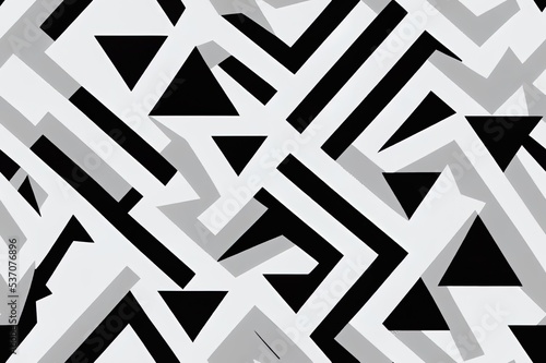 Square seamless background pattern from black triangle symbols are different sizes and opacity. The pattern is evenly filled. 2d illustration on white background