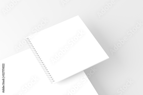 Square Spiral Notebook Notepad White Blank 3D Rendering Mockup