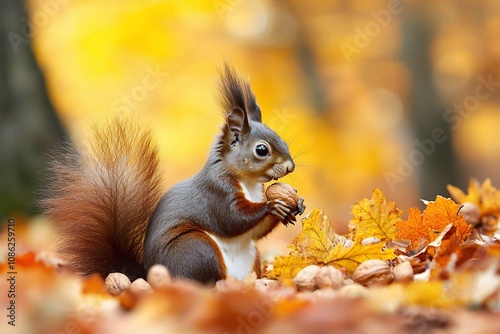 Squirrel Cherishing Autumn's Bounty Among Colorful Leaves