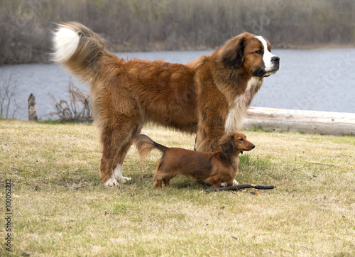 St. Bernese and Dachshund