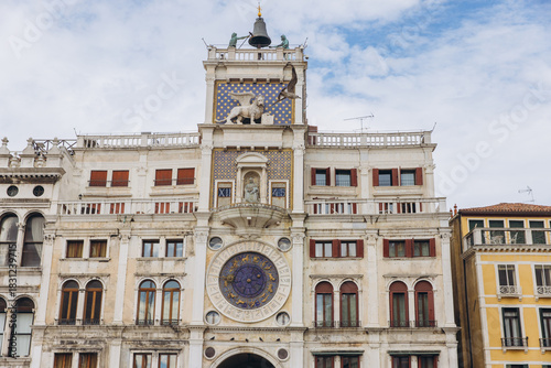 St Mark's Clocktower facade in Venice, Italy