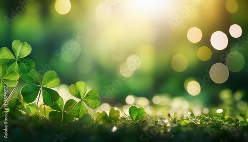 st patrick s day celebration banner with shamrocks and green clovers on blurred background