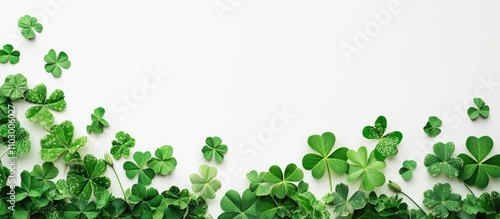 St Patrick's Day decorations featuring vibrant green shamrocks arranged against a clean white background for a festive celebration theme