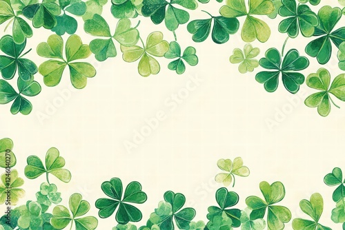 St. Patrick's Day-themed background with shamrocks. clover leaves in green color. Happy St. Patrick's Day concept. Green leaves of four-leaf clovers isolated on pastel cream color.
