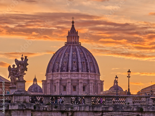 St. Peter's Basilica dome and St. Angel bridge, Rome, Italy