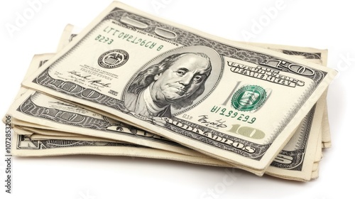Stack of American fifty dollar bills arranged neatly for a financial theme, representing wealth, business transactions, and economic concepts in a crisp, clear view.