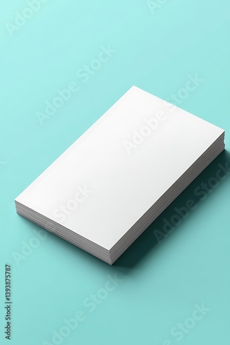 Stack of Blank Papers on Aqua Background: Mockup for Design and Branding