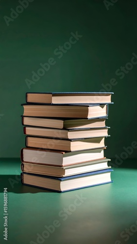 Stack of Books on Green Background, Education, Knowledge