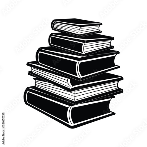 Stack of books silhouette isolated on white background