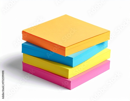 Stack of Brightly Colored Square Sticky Notes on White Background