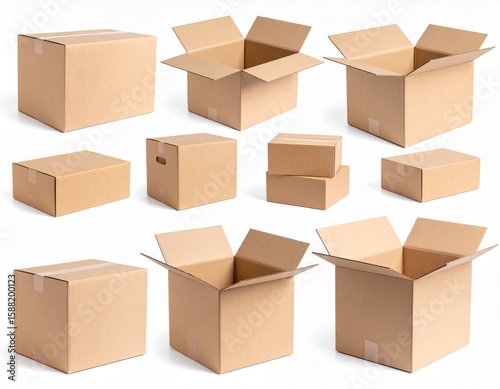 Stack of Brown Cardboard Boxes for Shipping and Storage on White Background