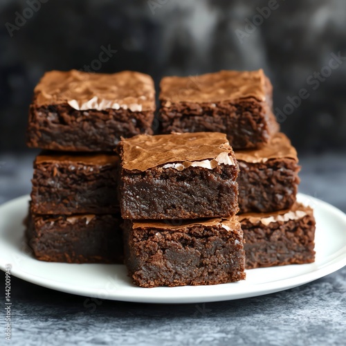 Stack of brownies squares on a plate